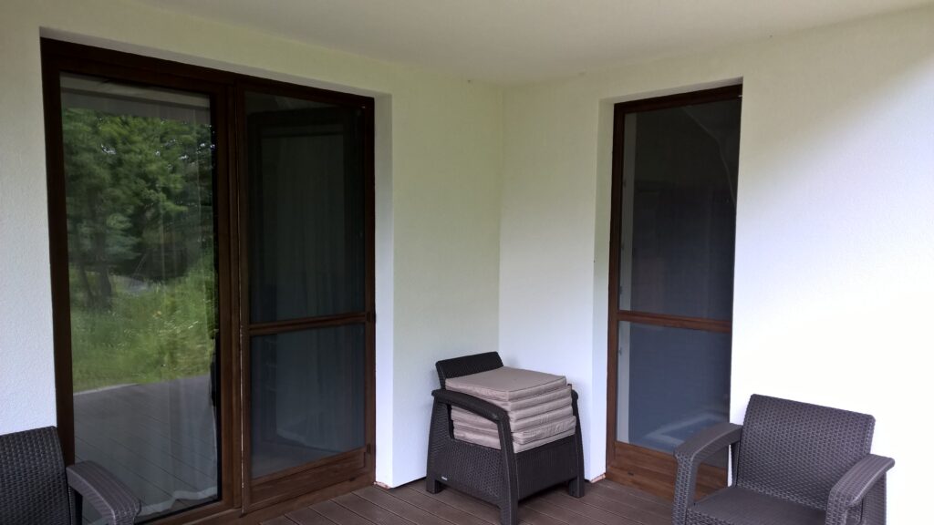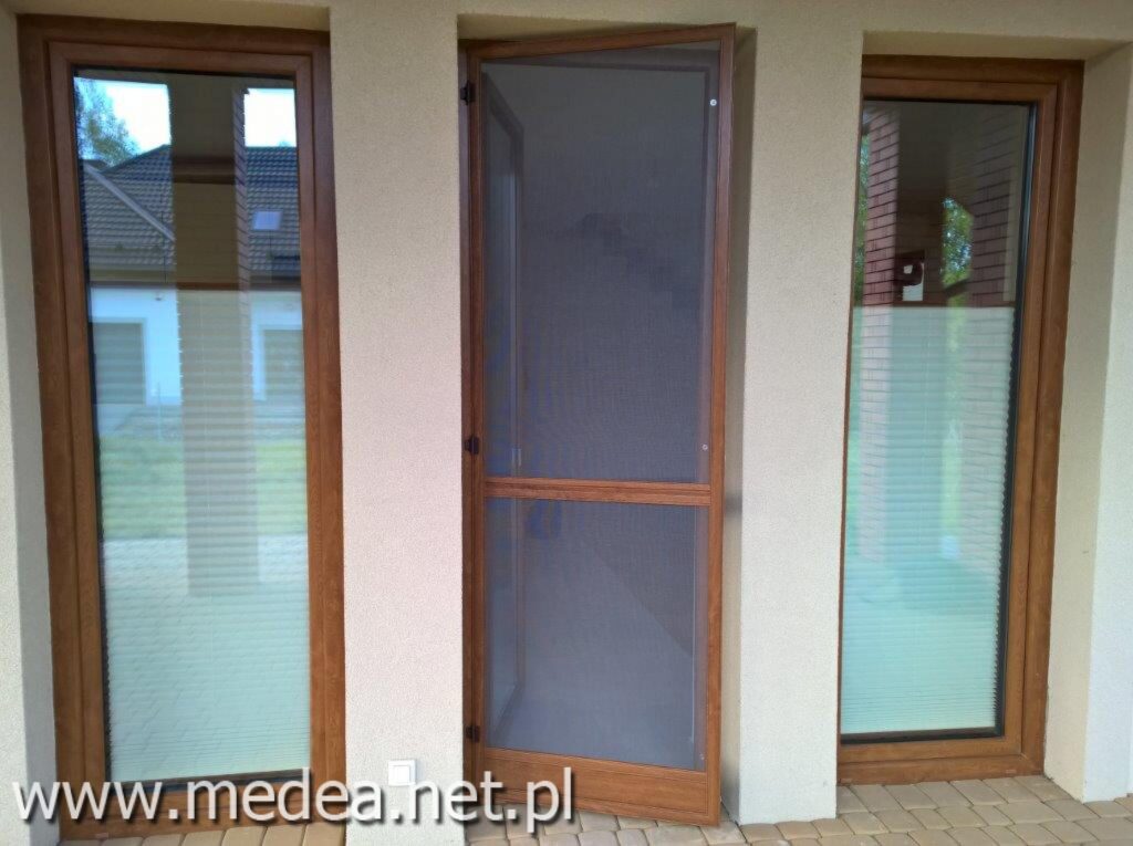 Głównie stosowana do drzwi balkonowych, montowana jest za pomocą zawiasów do fasady budynku lub futryny drzwiowej. Wyposażona jest w uchwyt do otwierania oraz magnesy trzymające moskitierę w pozycji zamkniętej, a także w uszczelkę szczotkową, która maksymalnie zabezpiecza pomieszczenie przed dostaniem się insektów i nieczystości z zewnątrz. Dodatkowo zamontowane w moskitierze samozamykacze, automatycznie domykające otwartą moskitierę, podnoszą komfort użytkowania.