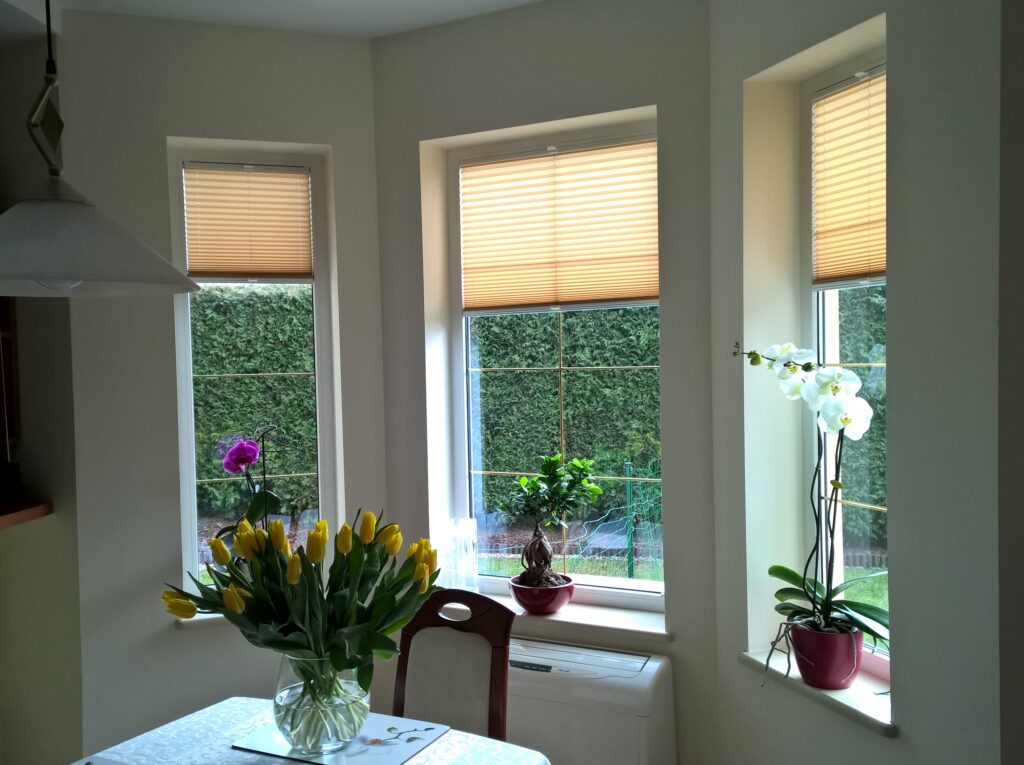 - komfort akustyczny i termiczny – specjalne, wielowarstwowe tkaniny poprawiają izolację akustyczną, redukując hałas uliczny nawet o kilkanaście decybeli; dzięki temu plisy gwarantują spokojny sen i komfort pracy zdalnej; zimą natomiast termoizolacja zapobiega ucieczce ciepła;